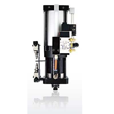 1、預(yù)壓式增壓缸:當(dāng)工作氣壓壓在液壓油表面時(shí),液壓油會(huì)因壓縮空氣作用而流向預(yù)壓行程腔,此時(shí)液壓油會(huì)迅速推動(dòng)軸心作位移,當(dāng)工作位移遇到的阻力大于氣壓壓力時(shí)預(yù)壓軸心則停止動(dòng)作,此時(shí),增壓缸的增壓段因?yàn)闅鈩?dòng)壓力動(dòng)作,增壓軸心亦開(kāi)始作位移動(dòng)作,并擠壓預(yù)壓缸體里的低壓油,使之增壓從而產(chǎn)生強(qiáng)大推力的效果。